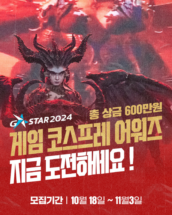 총 상금 600만 원으로, 나만의 게임 코스튬을 선보이는 기회입니다. 게임 속 캐릭터들의 모습을 재현하고, '코스프레'의 다양한 즐거움을 체험할 수 있으며, 온라인 예선전을 거쳐 지스타 2024 특설무대에서 본선이 진행됩니다. 또한 11월 17일에는 역대 지스타 게임 코스프레 어워즈의 1위, 2위, 3위 수상자들만 참가 가능한 왕중왕전이 개최되며 총 상금 800만 원으로 진행됩니다.