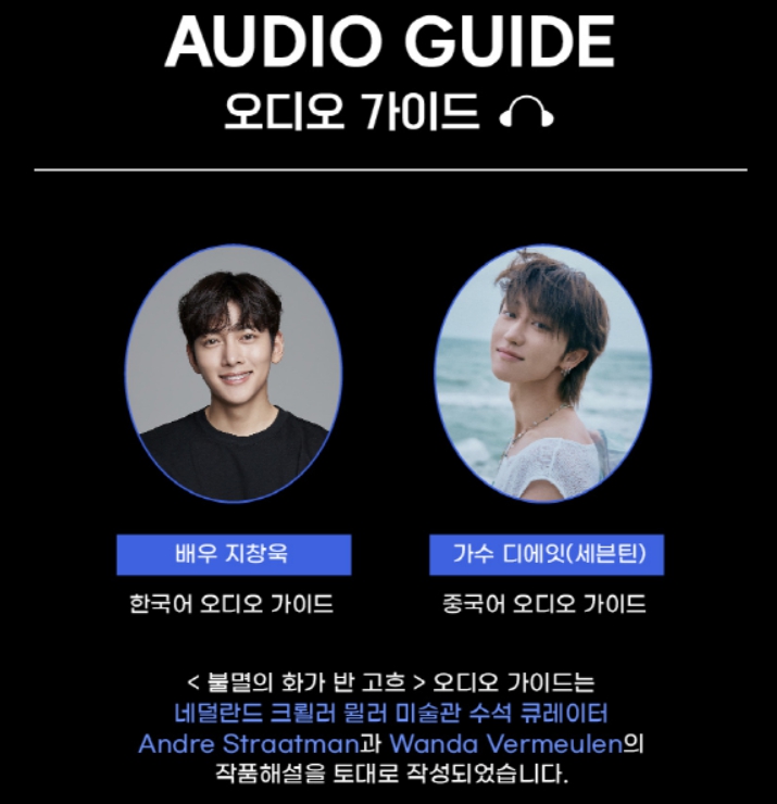 - 작품 해설 제공: 전시회에서는 작품에 대한 상세한 오디오 해설이 제공되어 관람객들이 작품의 배경과 의미를 깊이 이해할 수 있도록 돕습니다. 오디오 가이드는 네덜란드 크뢸러 뮐러 미술관 수석 큐레이터 Andre Straatman과 Wanda Vermeulen의 작품해설을 토대로 작성되어 한국어 오디오 가이드는 배우 지창욱, 중국어 오디오 가이드는 가수 디에잇(세븐틴)이 맡았습니다.