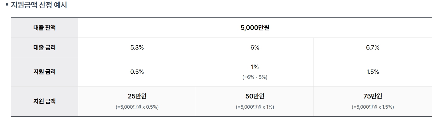 • 최대 지원 금액: 대출 잔액 1억 원까지 지원 가능
