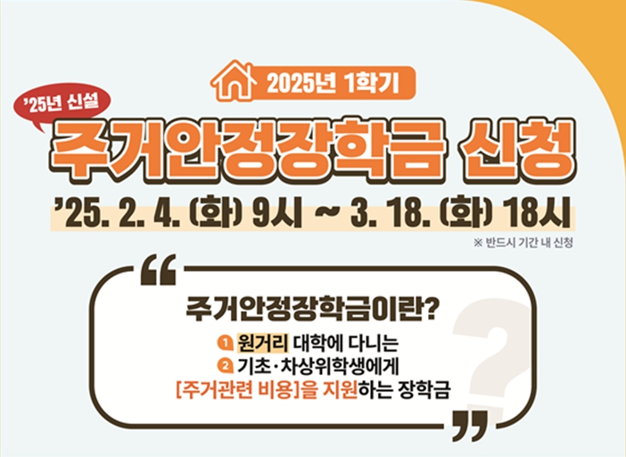 ※ 주거안정장학금은 학비가 아닌 거주 비용 지원을 위한 장학금이라는 점에서 차이가 있습니다.