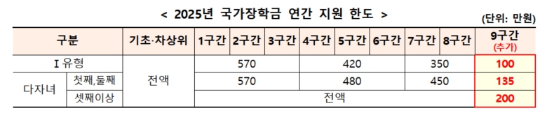기존에는 소득 8구간 이하의 학생들만 국가장학금 지원 대상이었으나, 2025년부터는 9구간까지 확대되었습니다. 이로 인해 중산층 가정의 학생들도 장학금 혜택을 받을 수 있게 되었습니다. 정부는 이를 통해 약 50만 명의 추가적인 학생들이 혜택을 받을 것으로 예상하고 있습니다.
