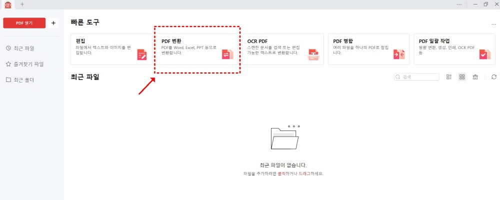 위의 화면에서 [PDF변환]을 선택하면, 아래와 같이 파일 탐색기창이 활성화됩니다. 여기서 변환하고자 하는 pdf파일을 찾아 선택하고 [열기]를 클릭합니다.