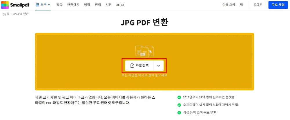 1. 무료 웹사이트에서 pdf파일 jpg변환 방법