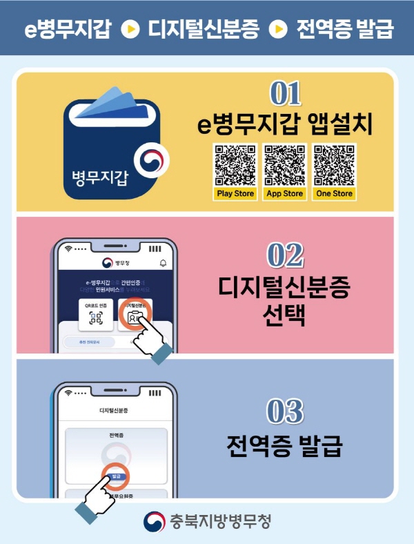 - 신청 방법: 'e-병무지갑' 앱 설치 후 전역증 발급 신청