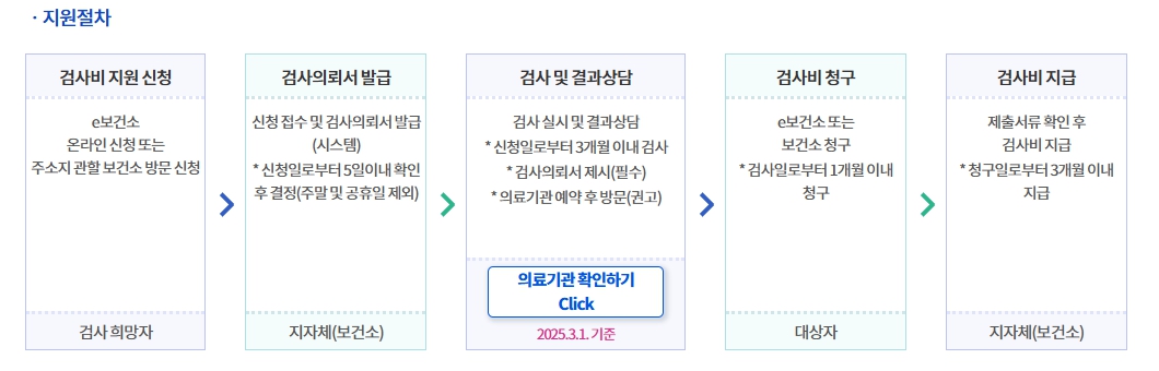 4. 검사비 청구: 검사 후 1개월 이내에 온라인(e보건소) 또는 보건소 방문 청구