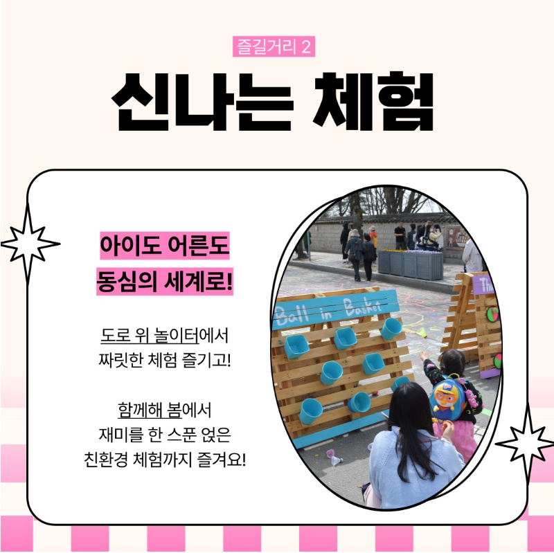 - 체험 부스 및 먹거리존 (도로 위 놀이터)
