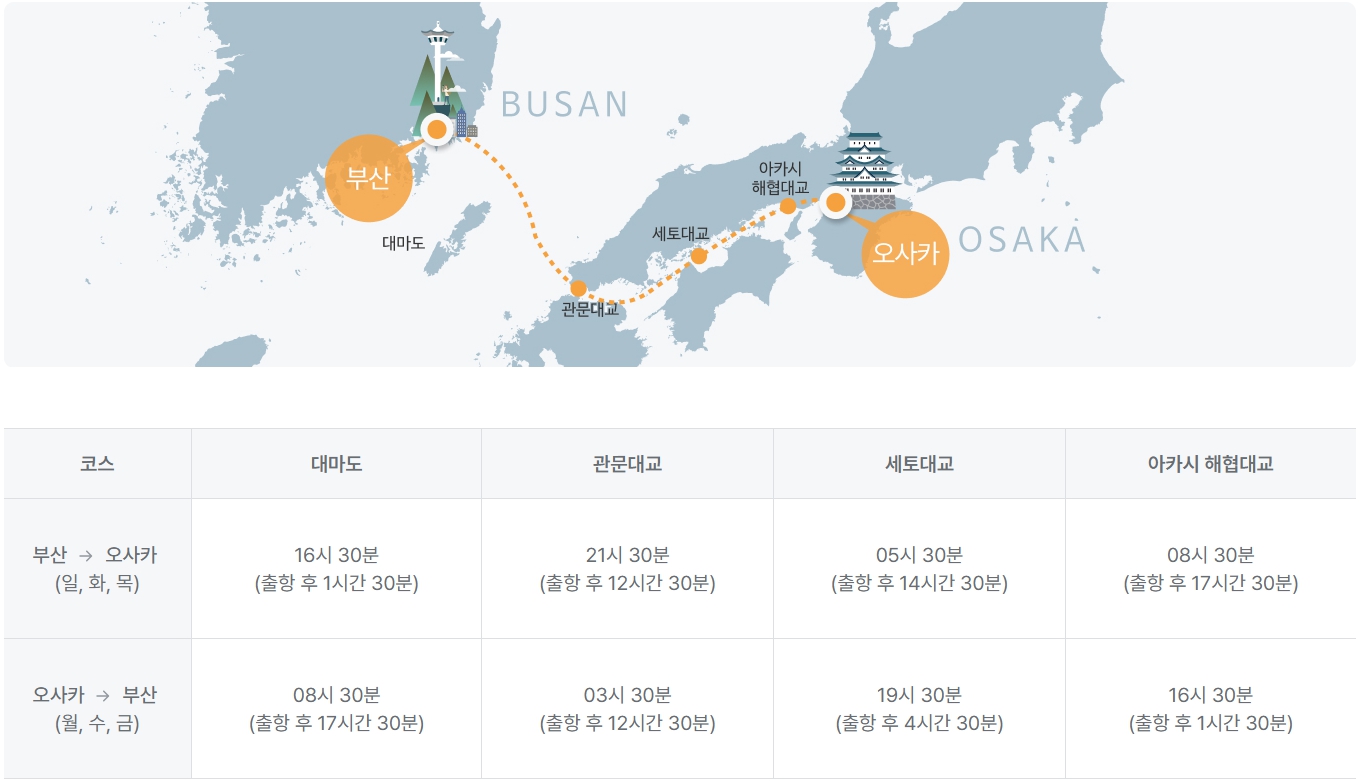 - 부산~오사카 왕복 또는 원나잇 크루즈 중 선택 가능합니다.