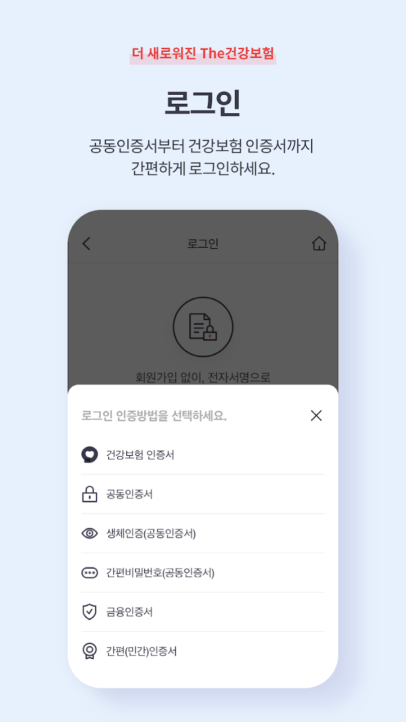 - 앱스토어 또는 플레이스토어에서 'The건강보험' 검색 및 설치