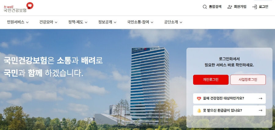 - 국민건강보험공단 홈페이지(https://www.nhis.or.kr) 접속