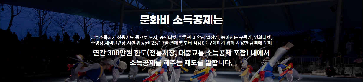 문화비 소득공제는 『조세특례제한법 제126조의 2』에 근거하여 시행되는 제도로, 근로소득자가 일정 요건을 충족한 경우, 도서·공연·영화·신문 구독뿐만 아니라 수영장·체력단련장 이용료까지도 연말정산 시 추가로 소득공제를 받을 수 있도록 하는 제도입니다.