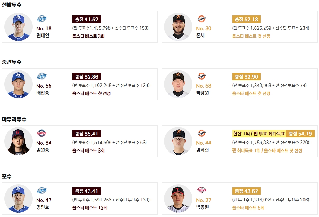 • 투수진: 배찬승 (삼성), 김원중 (롯데)