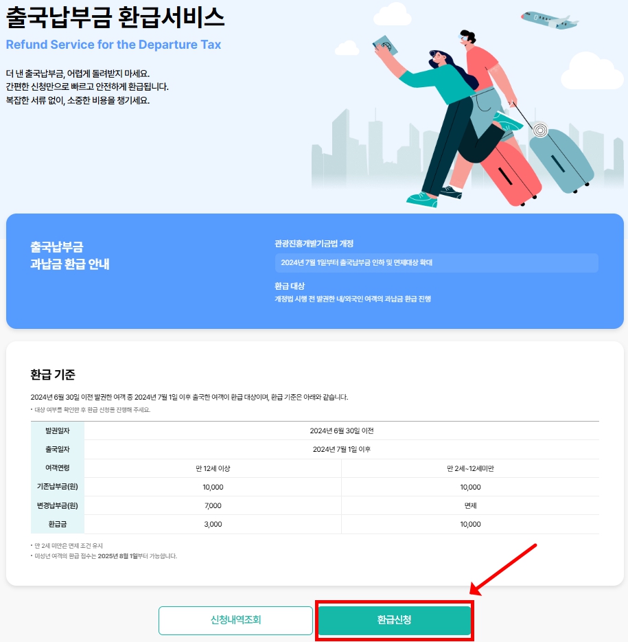 2024년 7월 1일부터 관광진흥개발기금법이 개정되어, 기존에 출국 시 납부한 출국납부금을 일부 혹은 전액 환급받을 수 있는 대상이 확대되었습니다. 특히 2024년 6월 30일 이전에 발권하였으나 7월 이후 출국하신 분이라면, 환급 신청을 간단히 온라인으로 진행할 수 있습니다.