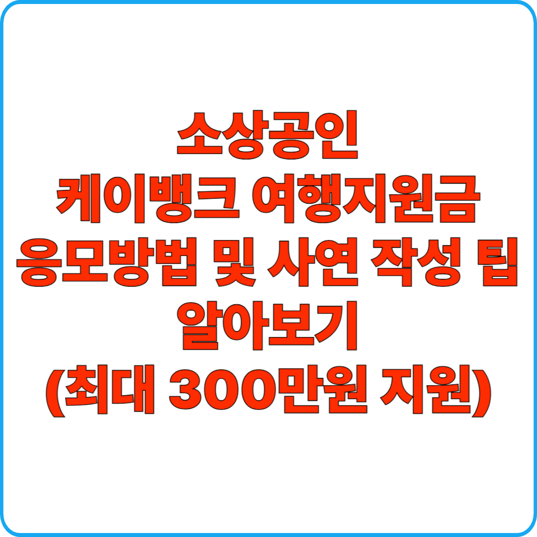 휴가도 없이 무더운 여름을 보내고 있는 소상공인, 자영업자들을 위한 케이뱅크 여행지원금 이벤트 소식입니다! 최대 300만 원 휴가비를 지원받을 수 있는 기회를 안내드리고, 이벤트 응모방법, 자주 묻는 질문, 사연 작성 팁까지 상세하게 설명해 드리겠습니다.