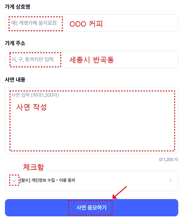- 사장님의 휴가 계획, 휴가가 필요한 이유, 휴가 후 달라질 가게 운영 계획 등을 진솔하게 담아 작성해 주세요.