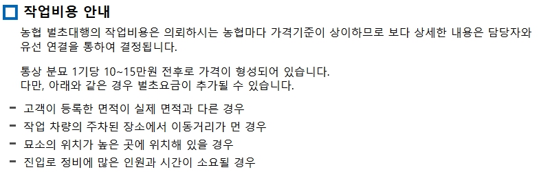 - 전화 신청: 앱으로 벌초가능지역 확인 후, 해당 농협 직접 유선 문의, 작업 신청