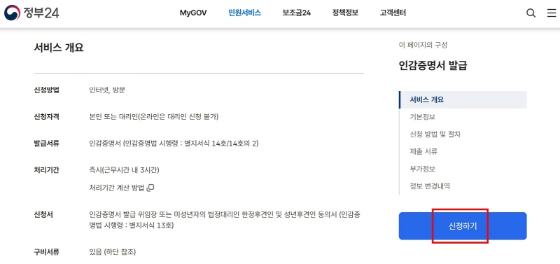4. 다음으로, 아래 화면에서 [신청하기]를 클릭합니다.